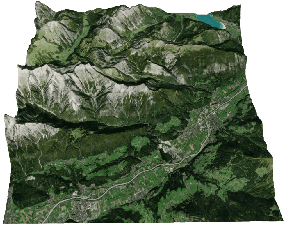 Das Photoshop-Plugin 3D-Mapper ist eine Komplettlösung für 3D-Landschaftsmodelle inkl. heightmaps, Texturen, Lichter, Schatten, 3D-Elemente, Wolken, etc... Ein Vorteil ist, dass mit den 3D-Funktionen von Photoshop und dem 3D-Mapper Plugin alles in einem Programm erledigt werden kann. Leider gibt es auch ein, zwei Nachteile: Der Output ist orthografisch, also mit parallellen Linien. Und der gewählte Ausschnitt wird vom 3D-Mapper Plugin großzügig interpretiert. Sprich: Er stimmt nie genau.